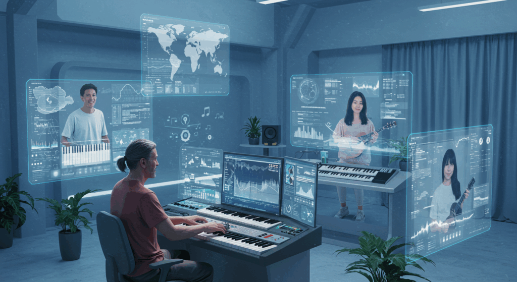 온라인으로 소통하며 곡 작업을 함께하는 형태.